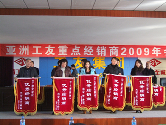 最后董事長董延偉做了題為《務(wù)實求新 和諧共贏 蓄勢待發(fā)》的報告。會上董事長首先對各位經(jīng)銷商的到來表示歡迎,一年來公司在廣大經(jīng)銷商的支持努力下,戰(zhàn)勝金融危機,取得了可喜的經(jīng)濟效益。公司能夠戰(zhàn)勝前所未有的金融危機,廣大經(jīng)銷商功不可沒,董事長對廣大經(jīng)銷商盡心盡力開拓市場表示感謝。他說,今天我們廠商歡聚一堂,就是要共商工友集團發(fā)展大計,探討如何在一個新的歷史起點上,團結(jié)和動員各位合作伙伴,發(fā)揚務(wù)實求新的精神,不斷開拓進取,合力開創(chuàng)工友各項事業(yè)的嶄新局面。董事長簡要的回顧了公司一年來工作所取得的成績。這一年里,公司緊扣市場的脈搏,進行了企業(yè)內(nèi)部大調(diào)整,增強內(nèi)功。在企業(yè)管理、技術(shù)研發(fā)、降本降耗、改進工藝提高產(chǎn)品品質(zhì)、鞏固并拓展營銷網(wǎng)絡(luò)等方面下足了功夫,使公司在克服金融危機帶來不利影響的同時增強了實力。會上,董事長重點談了明年公司各項工作的規(guī)劃并對經(jīng)銷商提出了三項要求。他說:“我們廠商精誠團結(jié)戰(zhàn)勝了金融危機,國內(nèi)市場取得了不菲的成績。今后廣大經(jīng)銷商要隨時掌握市場的信息,不斷調(diào)整營銷策略,擴大經(jīng)銷規(guī)模,把工友產(chǎn)品及時推向市場,為廣大用戶提供滿意的服務(wù),實現(xiàn)廠商共贏?!彼Mㄟ^經(jīng)銷商大會來表達公司最真摯的感激之情,從而回報與公司唇齒相依的經(jīng)銷商們,并熱切的希望創(chuàng)建一個友善、和諧的溝通交流平臺,為工友集團在未來的市場表現(xiàn)中更加出色,希望經(jīng)銷商廣泛提意見,公司會廣納善言,改善不足。